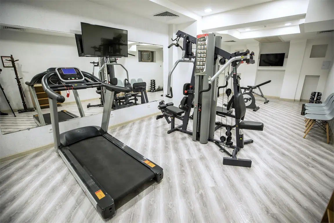 Наш фитнес‑зал расположен на подвальном этаже отеля и открыт каждый день с 08:00 до 20:00. Здесь представлен широкий выбор тренажеров как для профессионалов, так и для любителей эффективных тренировок.